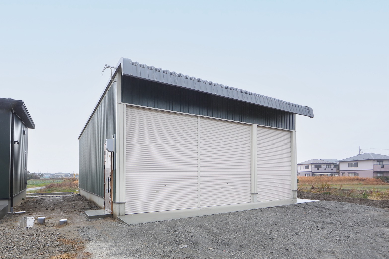 【鉄骨平屋型】:倉庫・簡易加工場・資材保管用に導入。構造の自由度が高く人気